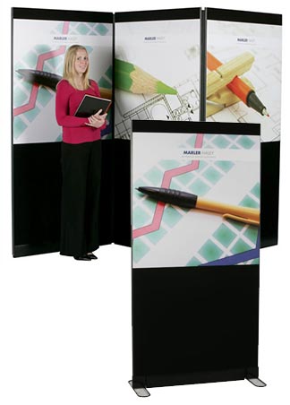 Our multifunctional display panels can be either linked together with a rubber hinge or used individually. Covered in black nyloop fabric, our panels are double sided making them ideal for poster boards, partitioning, wall backdrops and information displays. The fabric is also compatible with Velcro hook.